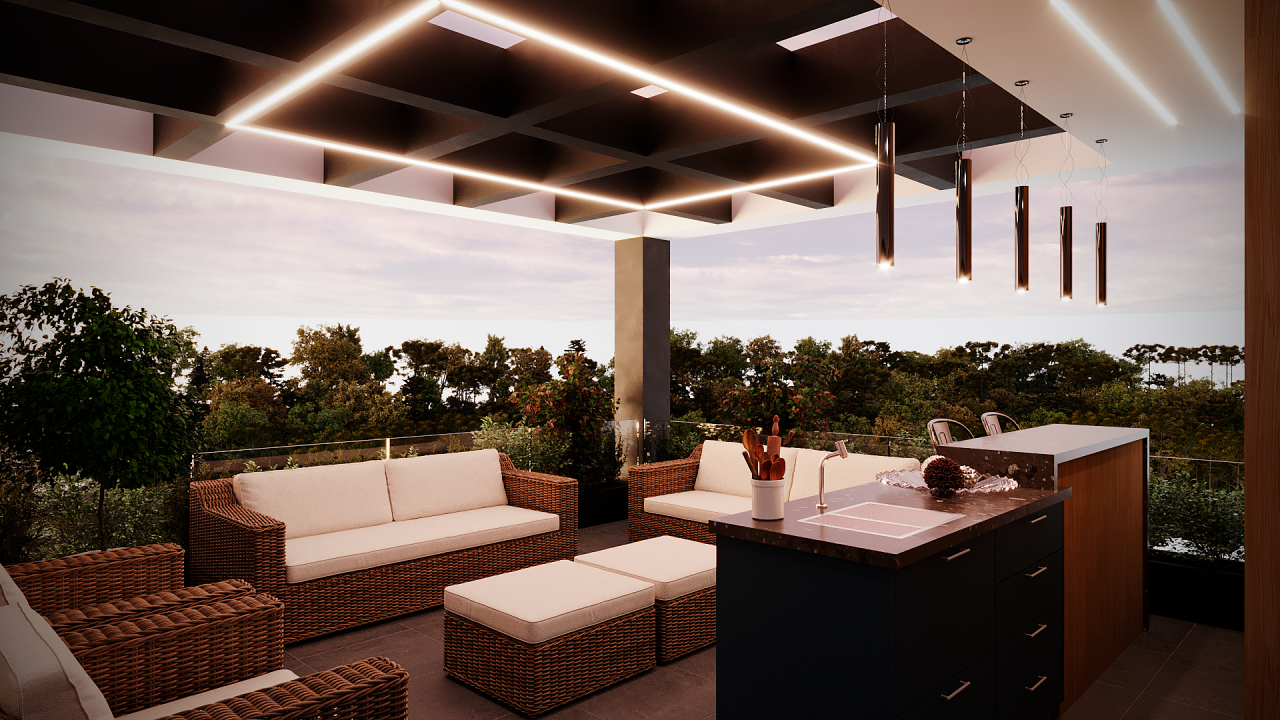 Os ambientes internos oferecem boa ventilação e iluminação natural, proporcionando uma atmosfera agradável e convidativa. A sensibilidade na divisão dos espaços promove harmonia e funcionalidade, destacando-se em conforto térmico e acústico.