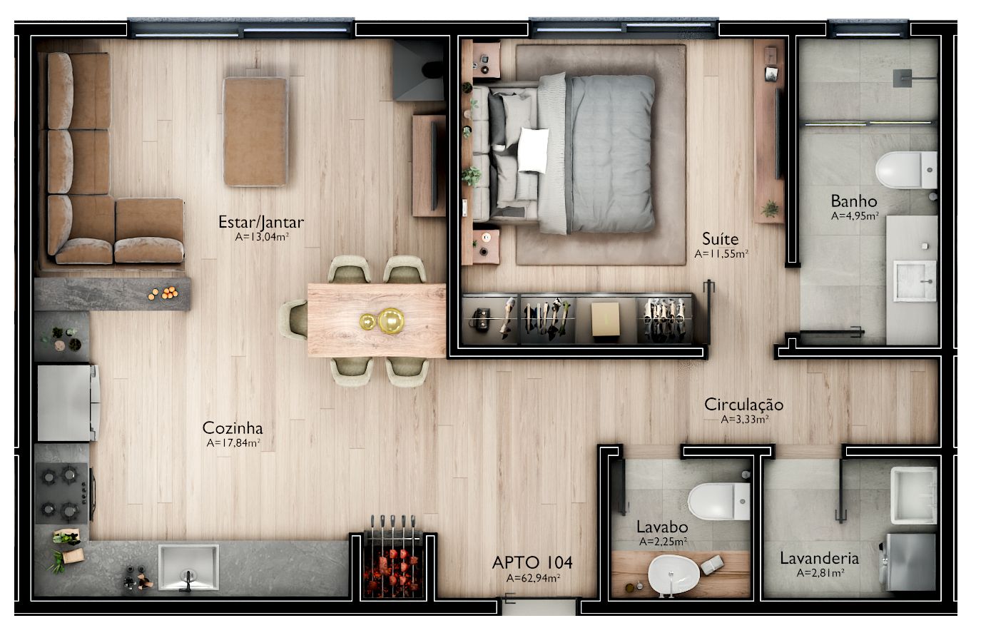 | 105 | 63.42m² | 1 | 2 | 1 | R$ 794.200,00 |