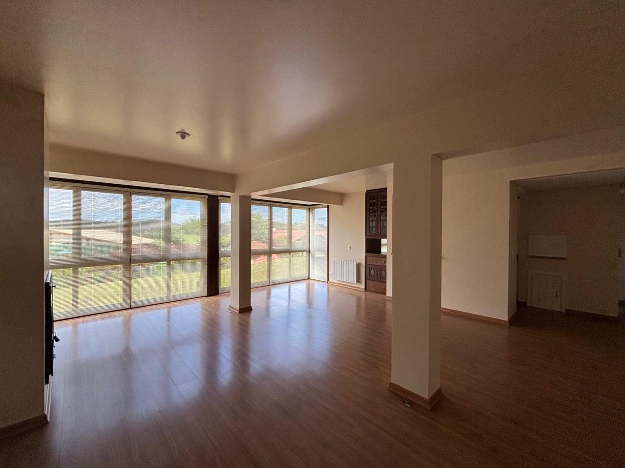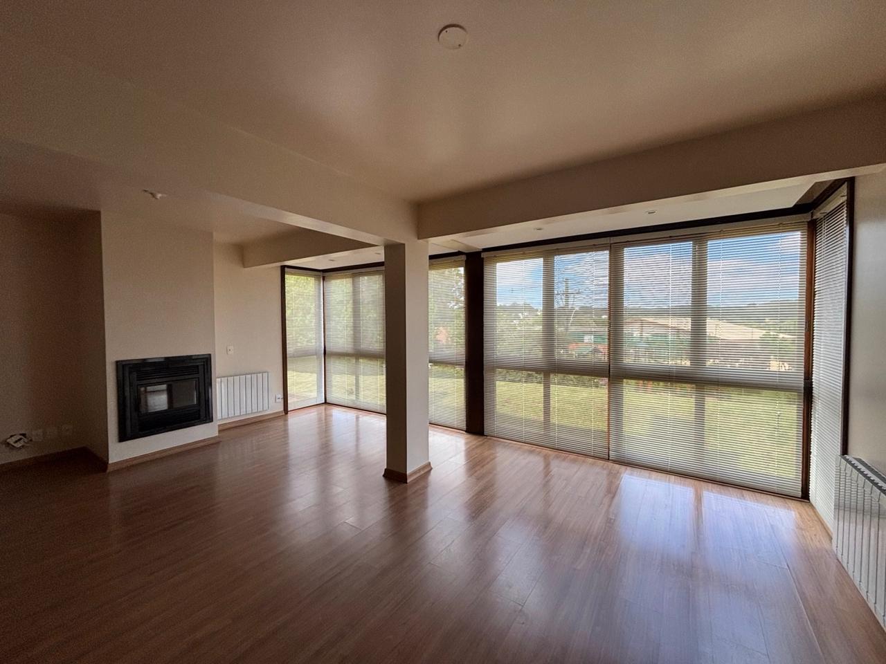 O living para dois ambientes com lareira em alvenaria traz aquele clima serrano que todo mundo ama, enquanto a cozinha americana com churrasqueira integra os espaços e deixa o dia a dia mais prático e convidativo. Conta ainda com banheiro social, área de serviço e 1 vaga de garagem.