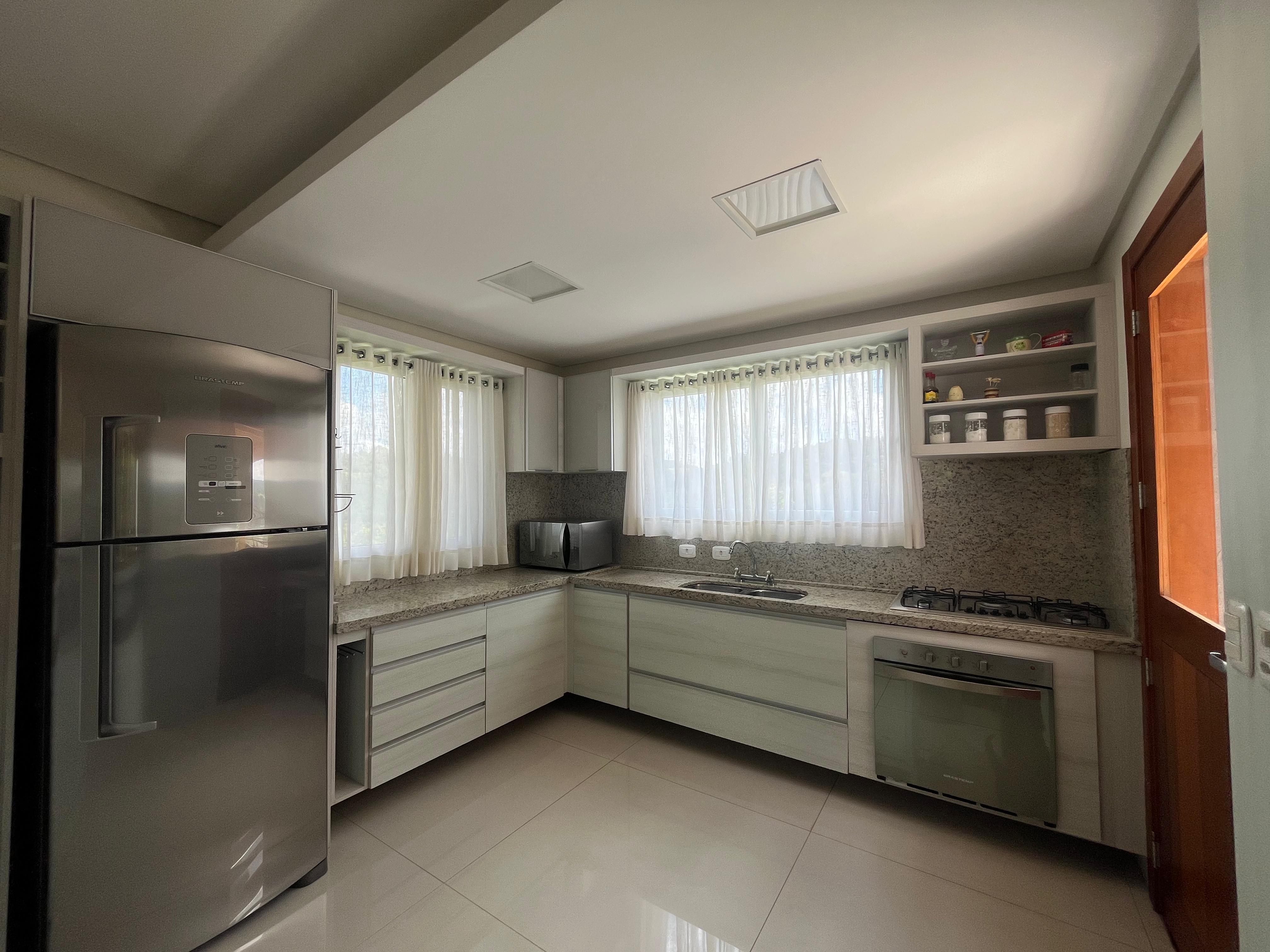 A casa também conta com pé direito duplo na sala, móveis sob medida e uma ótima orientação solar, com ventilação cruzada, que confere um conforto térmico acima da média.