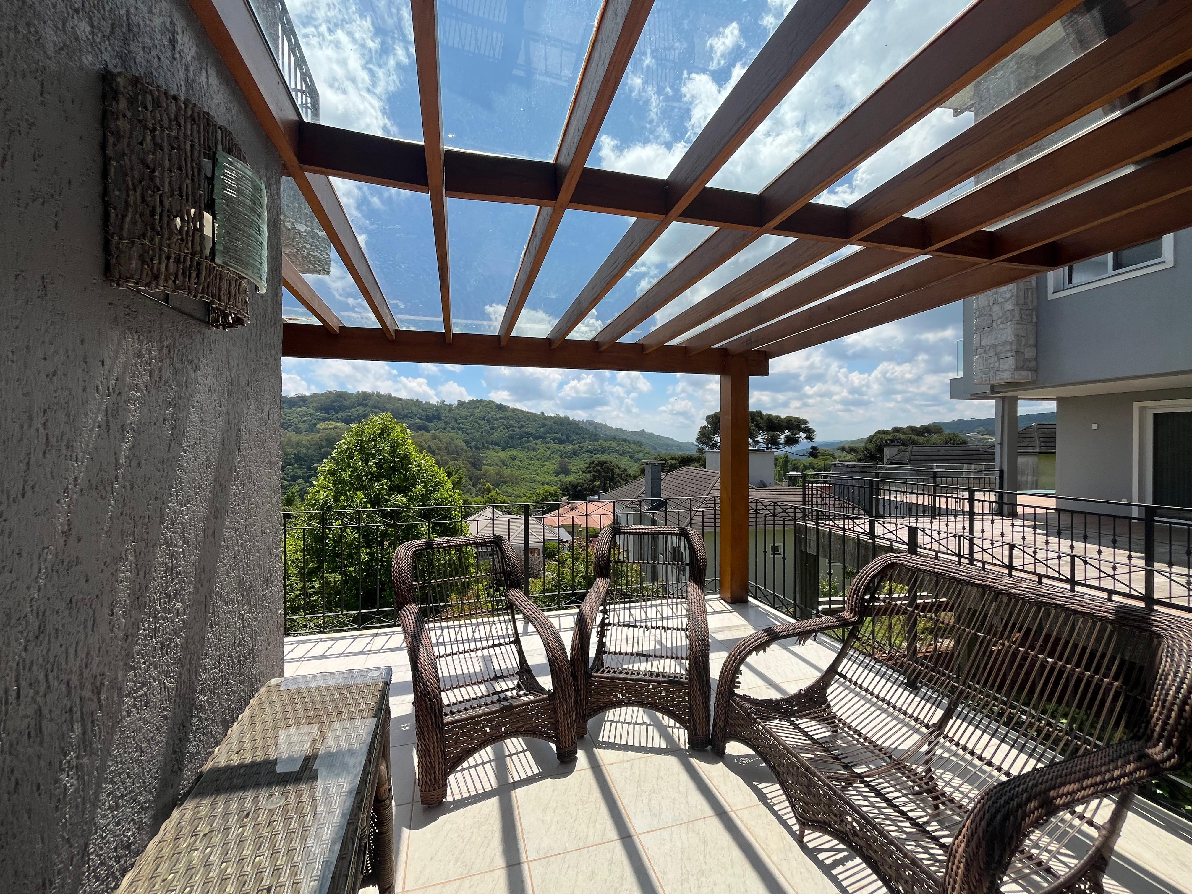 A casa, em estilo serrano tradicional, foi muito bem construída e está em perfeito estado de conservação. Conta com 3 suítes, além de um mezanino extra com uma das vistas mais bonitas da cidade. O andar térreo contempla todos os ambientes sociais - sala de estar, cozinha ampla, sala de jantar e uma sacada com pergolado, um ambiente totalmente integrado e perfeito para aproveitar a vida.
